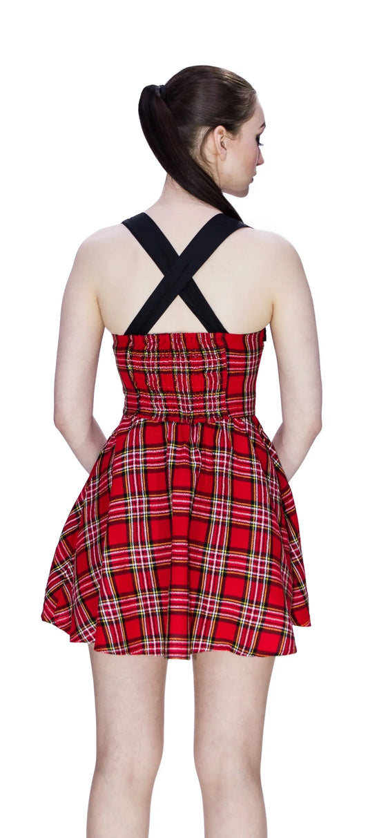 Grey Checkered Lace-up Mini Dress with Sweetheart Neckline