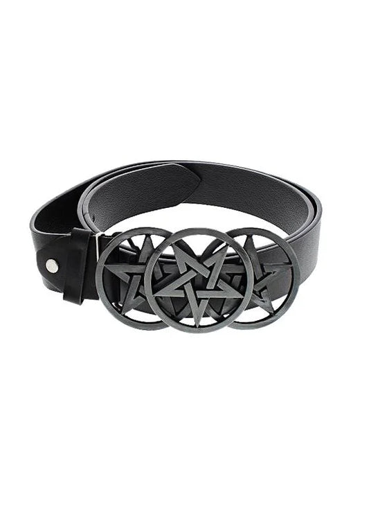 Black Vegan Leather Belt with Large Pentagram Buckle