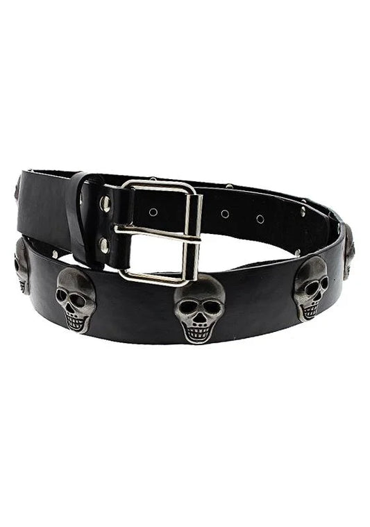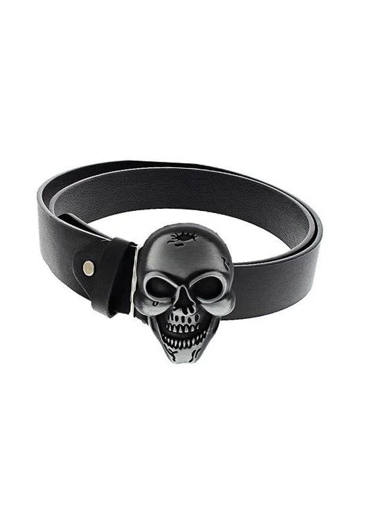 Black Vegan Leather Belt with Large Skull Buckle