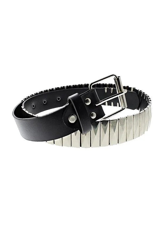 Black Vegan Leather Belt with Silver Rectangular Pyramids