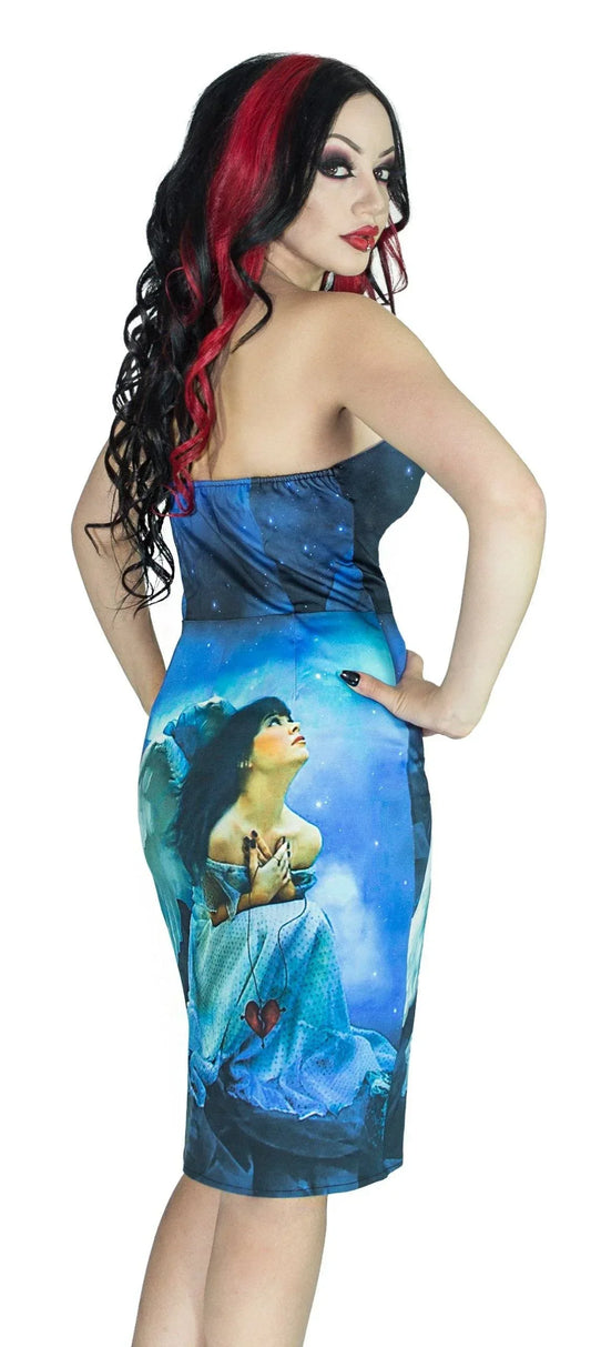 Angel Midi Dress with Blue Moon and Night Sky Design