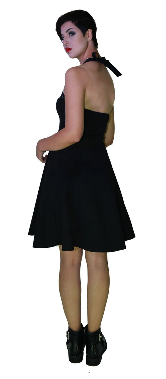 Metallic Eyelets Black Halterneck Mini Dress - Maisie