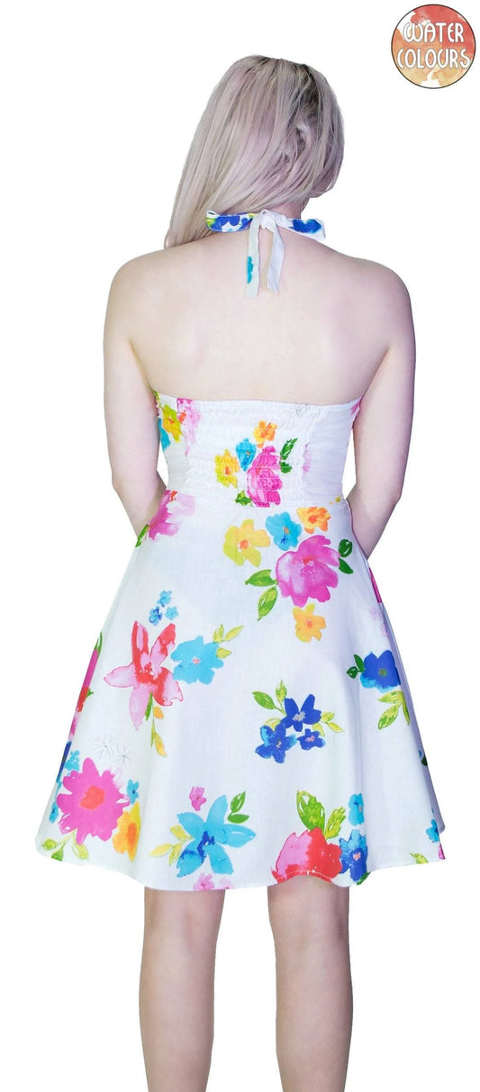 Monochrome Sunflower Halterneck Black Mini Dress - Alizon