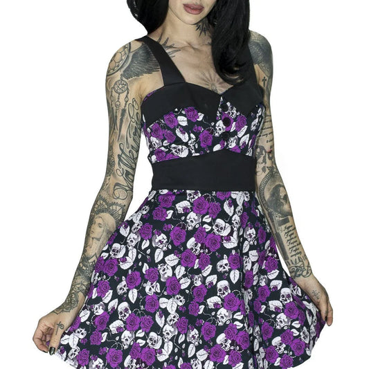 Skulls And Purple Roses Mini Dress - Michelle