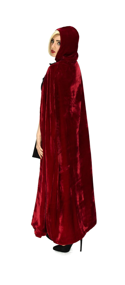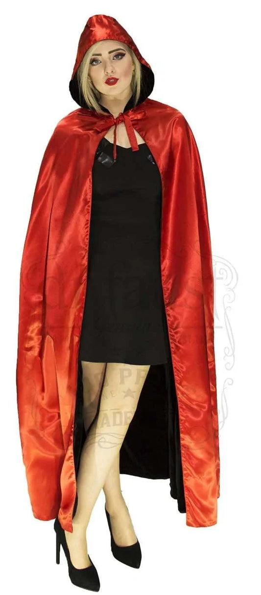 Red Silk And Black Velvet Reversible Pointed Hooded Cape - Juliana
