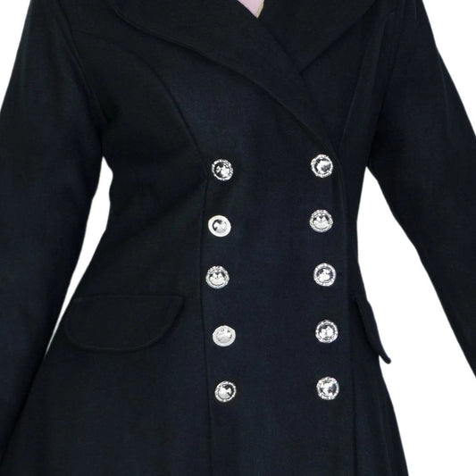 Faux Fur Cuffs Silver Buttons Black Wool Coat - Dominique