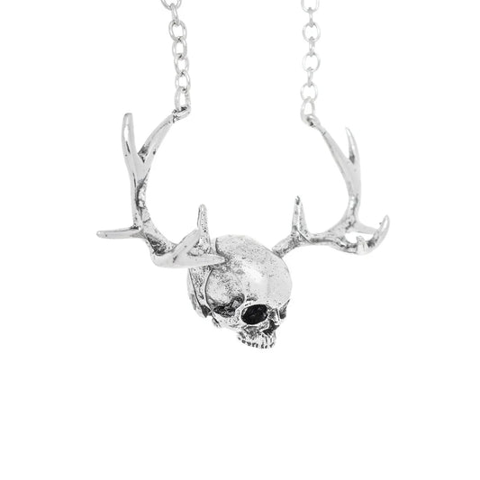The Stag Silver Skull Antlers Pendant And Necklace - Karsyn