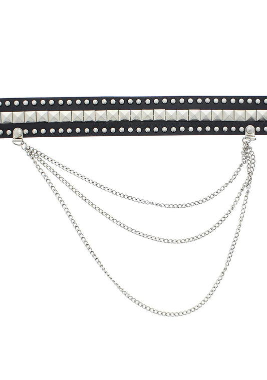 Pyramids & Conical Studs Black Vegan Leather Belt - Corbin
