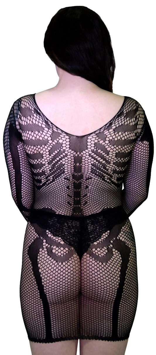 Skeleton Printed Fish Net Black Sheer Mini Dress - Sabine