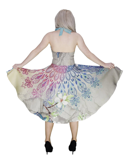 Halter Neck Pastel Midi Dress With American Robins And Henna DesignRegular price £89.98 GBPRegular priceUnit price / per-