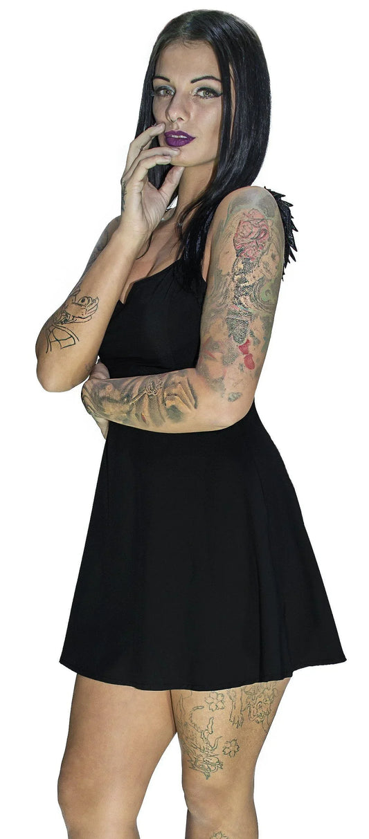 Plus Size Black Cotton Dress with Cap Sleeves and Soft Lining Black Biker
