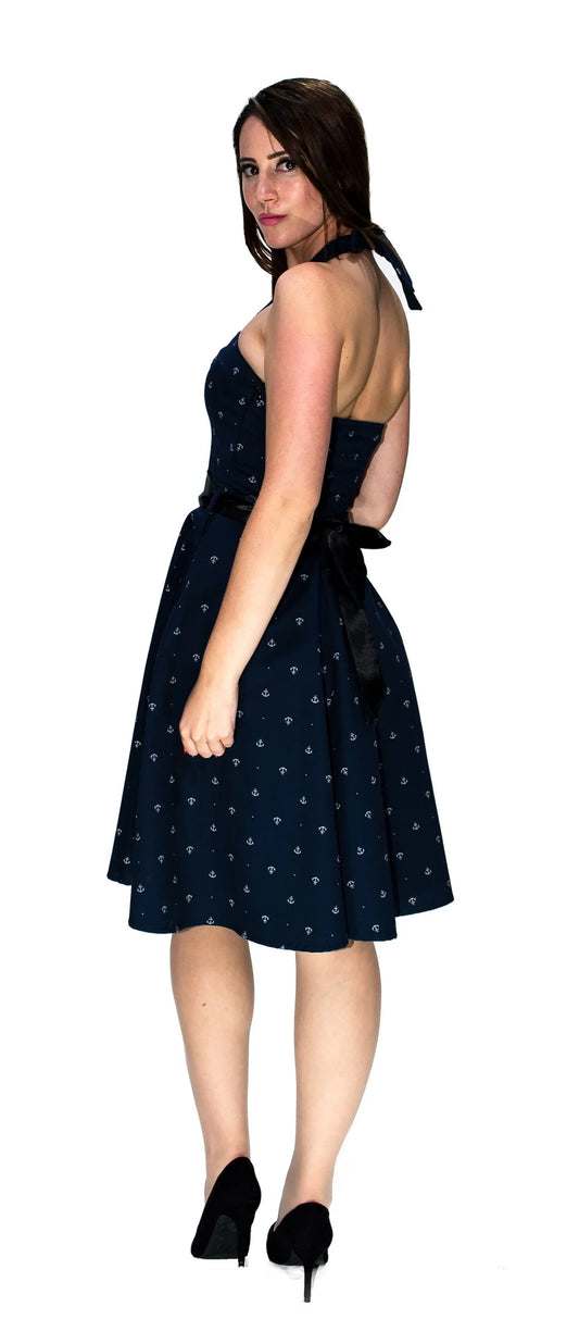 White Anchors Nautical Navy Midi Dress - Gabriella