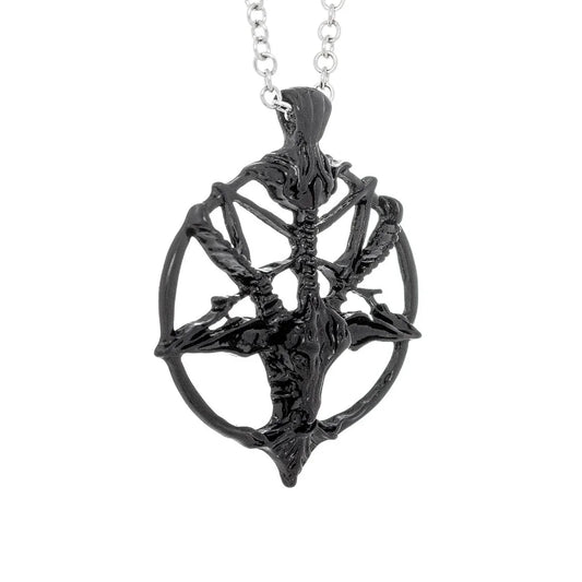 Black Sigil Of Baphomet Pendant: Sterling Silver Plated & Nickel Free